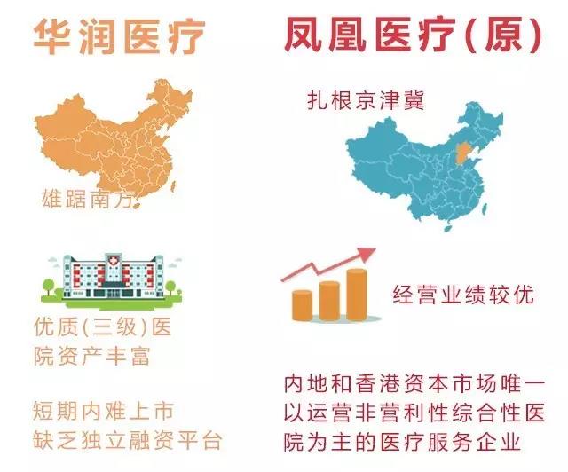 華潤自2015年1月開始接觸鳳凰醫(yī)療團隊并初步溝通合作意向,經過多次磋商籌劃交易方案,最終確定以資產換股權方式實現華潤醫(yī)療主要資產上市,并成為中國最大醫(yī)療服務集團的單一最大股東。同期,“華潤鳳凰”與中信醫(yī)療簽署協(xié)議,以發(fā)股方式收購中信旗下2家營利性醫(yī)院。